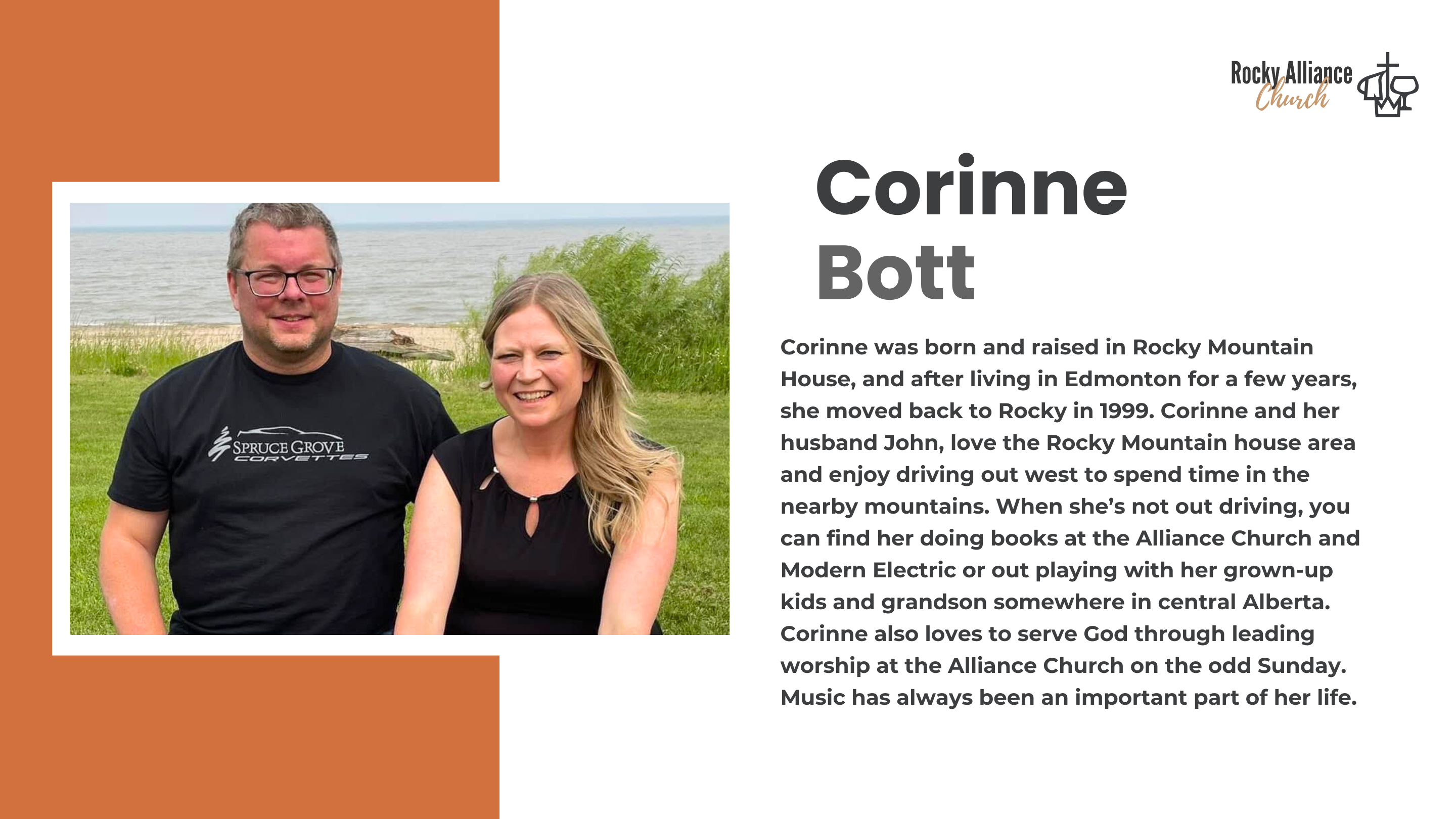 Corinne is the Bookkeeper at Rocky Alliance Church. She is responsible for recording and reporting all of the financial transactions it takes to make the church able to run all the different ministries.