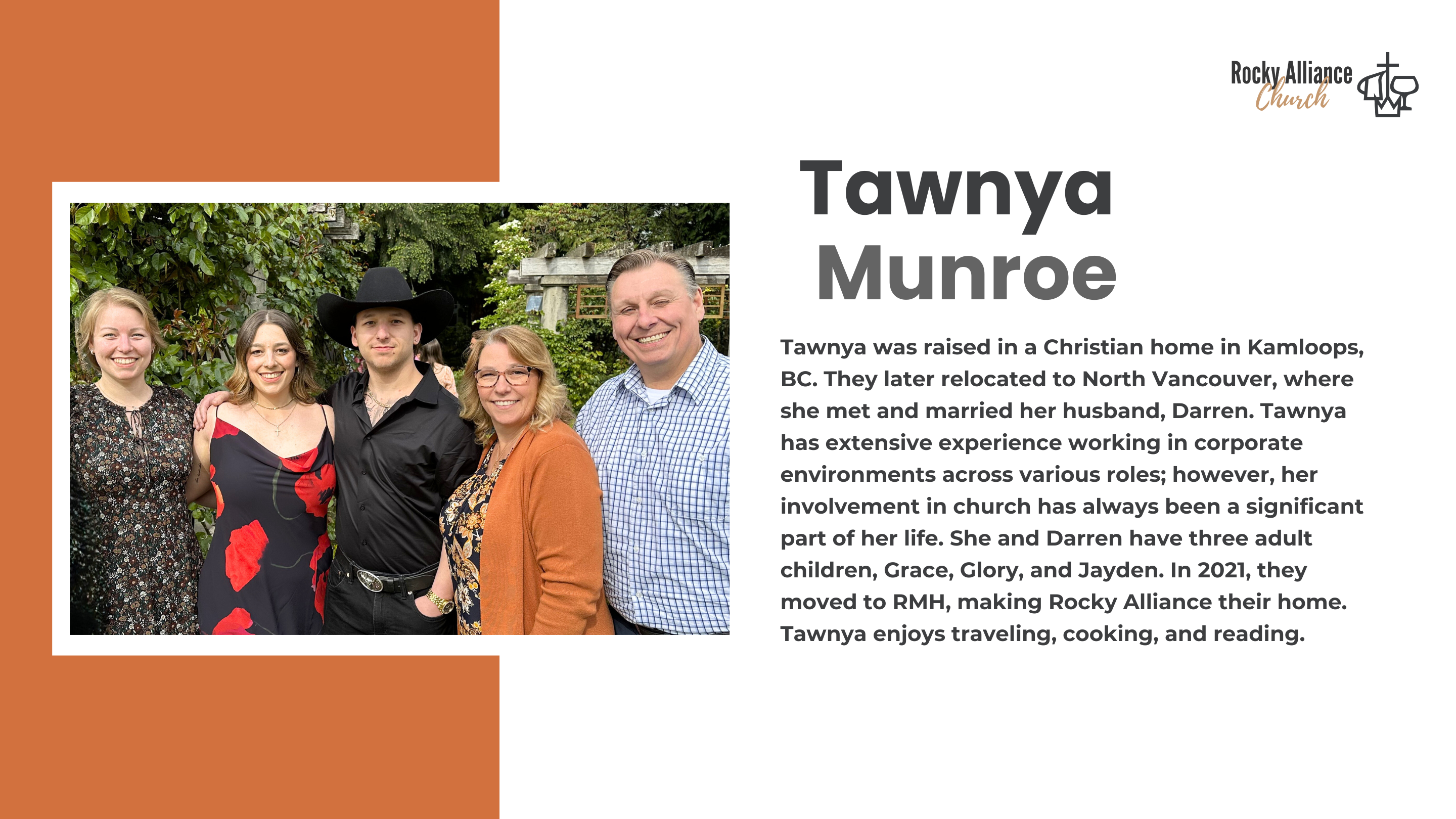 Tawnya serves as the Administrative Assistant at Rocky Alliance Church. She brings management and customer service experience to her role and is readily available to assist with the daily operations of the church office.